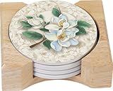 Here are some of the great features of CounterArt Magnolias Design Round Absorbent Coasters in Wooden Holder, Set of 4